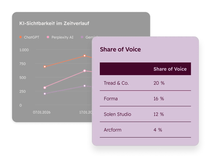 Share of Voice: Wie häufig Ihre Marke im Vergleich zu Wettbewerbern bei denselben Prompts erwähnt wird.