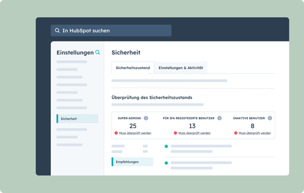 HubSpot bietet Datenschutz und Sicherheit, damit unsere Kundschaft unsere Produkte im Einklang mit den HIPAA-Bestimmungen verwenden kann. Hierzu gehören unter anderem Sicherheitsfunktionen wie umfassende Prüfprotokollierung, erweiterte Authentifizierungsfunktionen, Timeout bei inaktiver Sitzung, Empfehlungen zur Kontosicherheit, Verschlüsselung auf Anwendungsebene pro Mandant. In unserem Trust Center finden Sie Ressourcen zum Speichern vertraulicher Daten, die Sie dabei unterstützen, unsere Produkte und Dienstleistungen so zu nutzen, dass Ihre HIPAA-Verpflichtungen eingehalten werden.