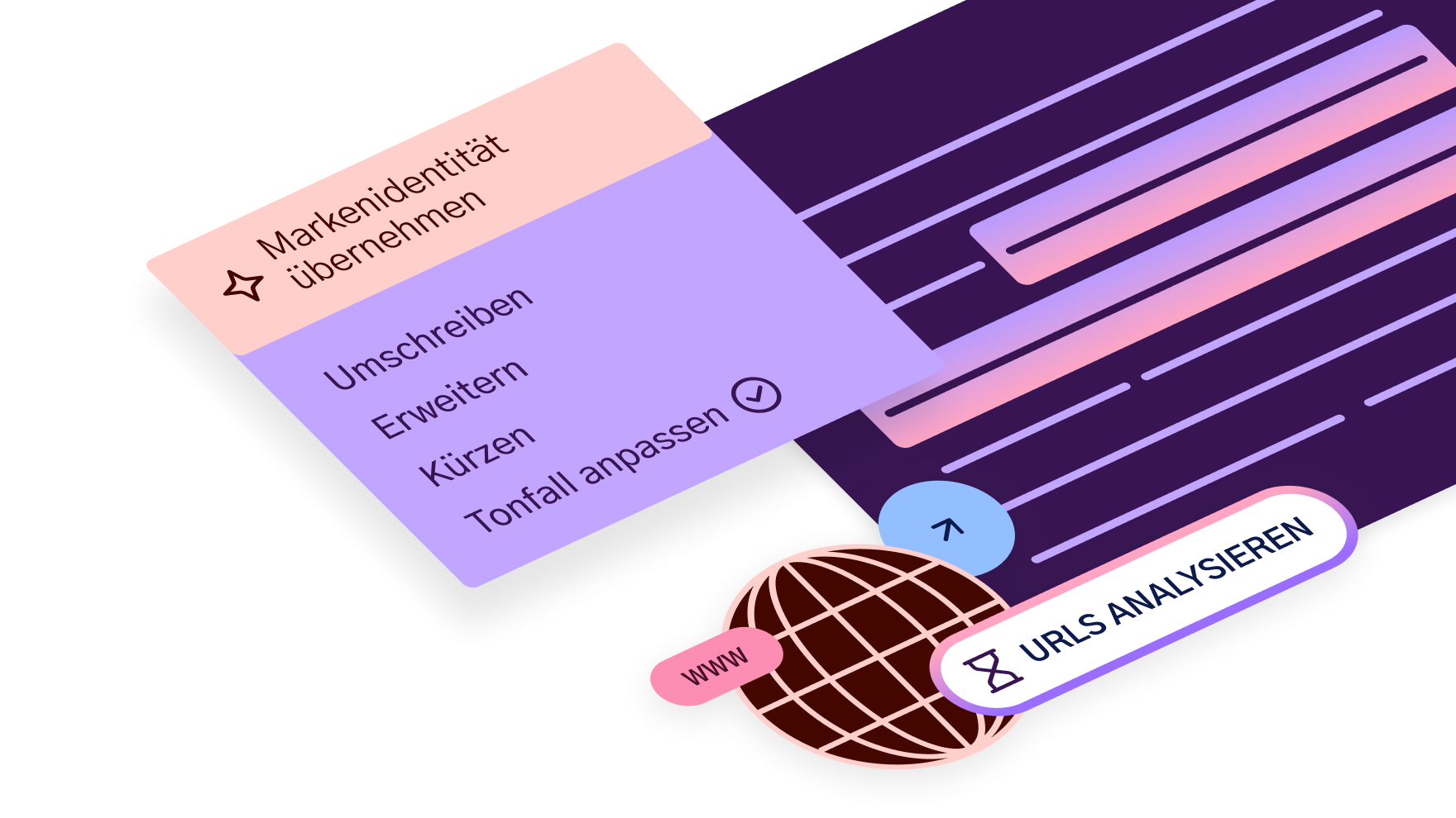 Sparen Sie Zeit und Geld bei der Erstellung von ausführlichen Inhalten mit unseren KI-Assistenten für Blogs und Bilder. Und mit der Content-Aufbereitung nutzen Sie einzelne Inhalte mit nur wenigen Klicks in verschiedenen Formaten.