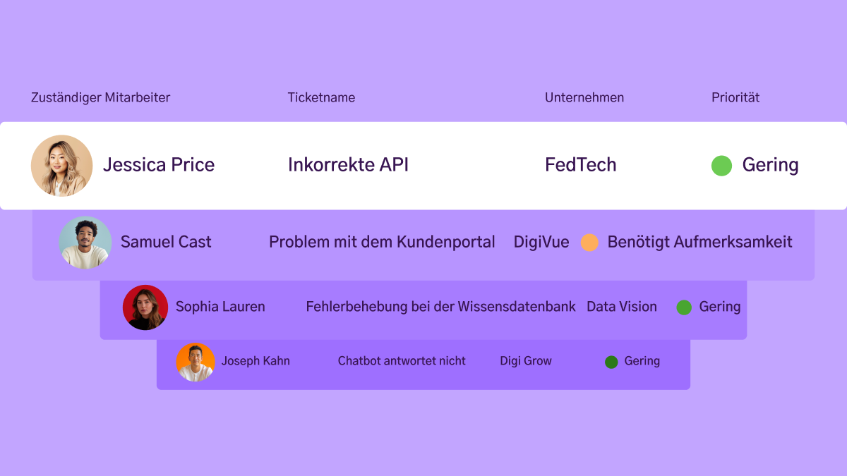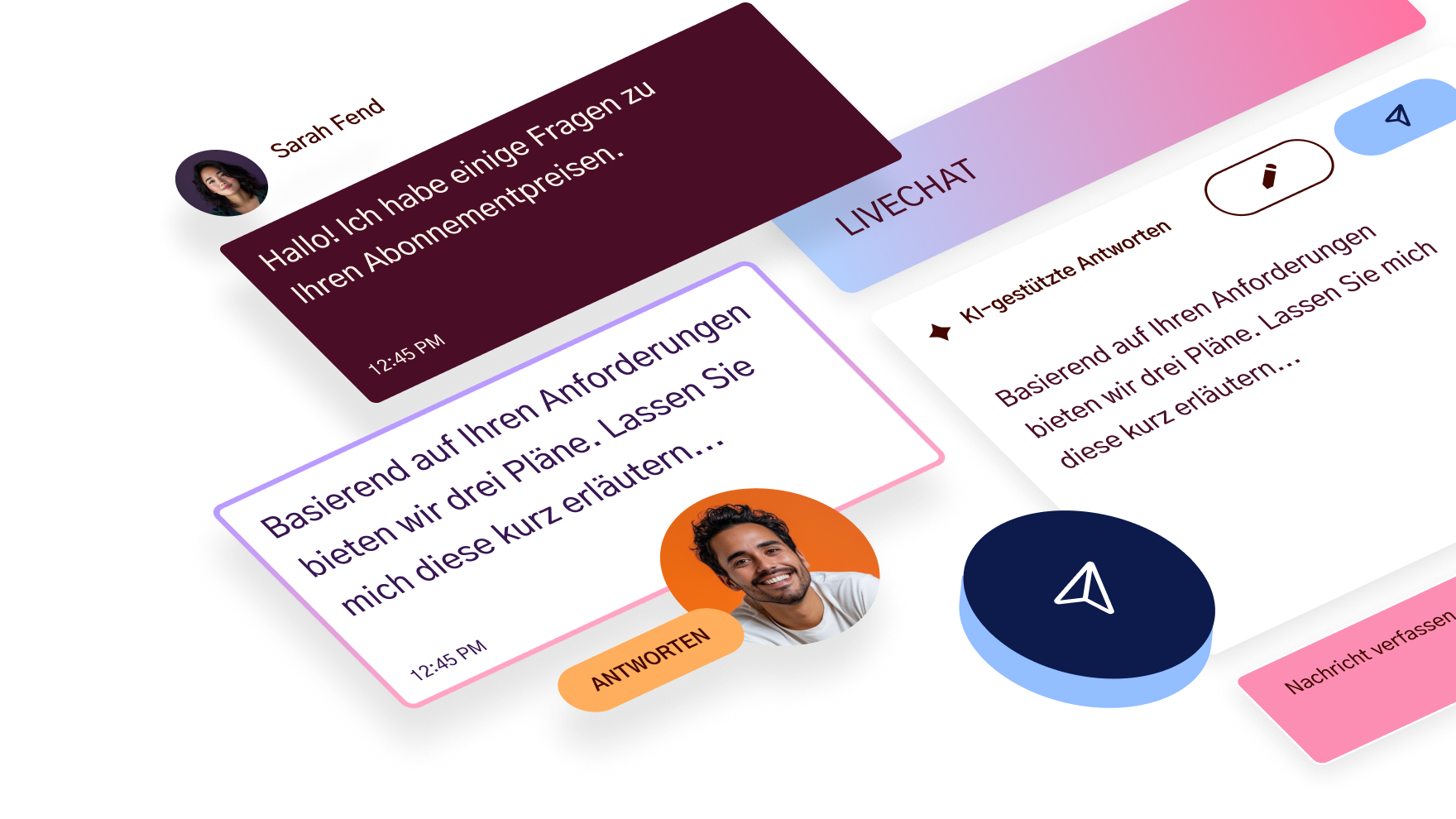 Perfektionieren Sie die Effektivität Ihrer Mitarbeitenden mit unserem brandneuen Helpdesk-Workspace, verbesserten SLAs, robusten Routing-Tools und einer individuell anpassbaren Wissensdatenbank. Helfen Sie Ihrer Kundschaft rund um die Uhr mit unserem KI-gesteuerten Chatbot.